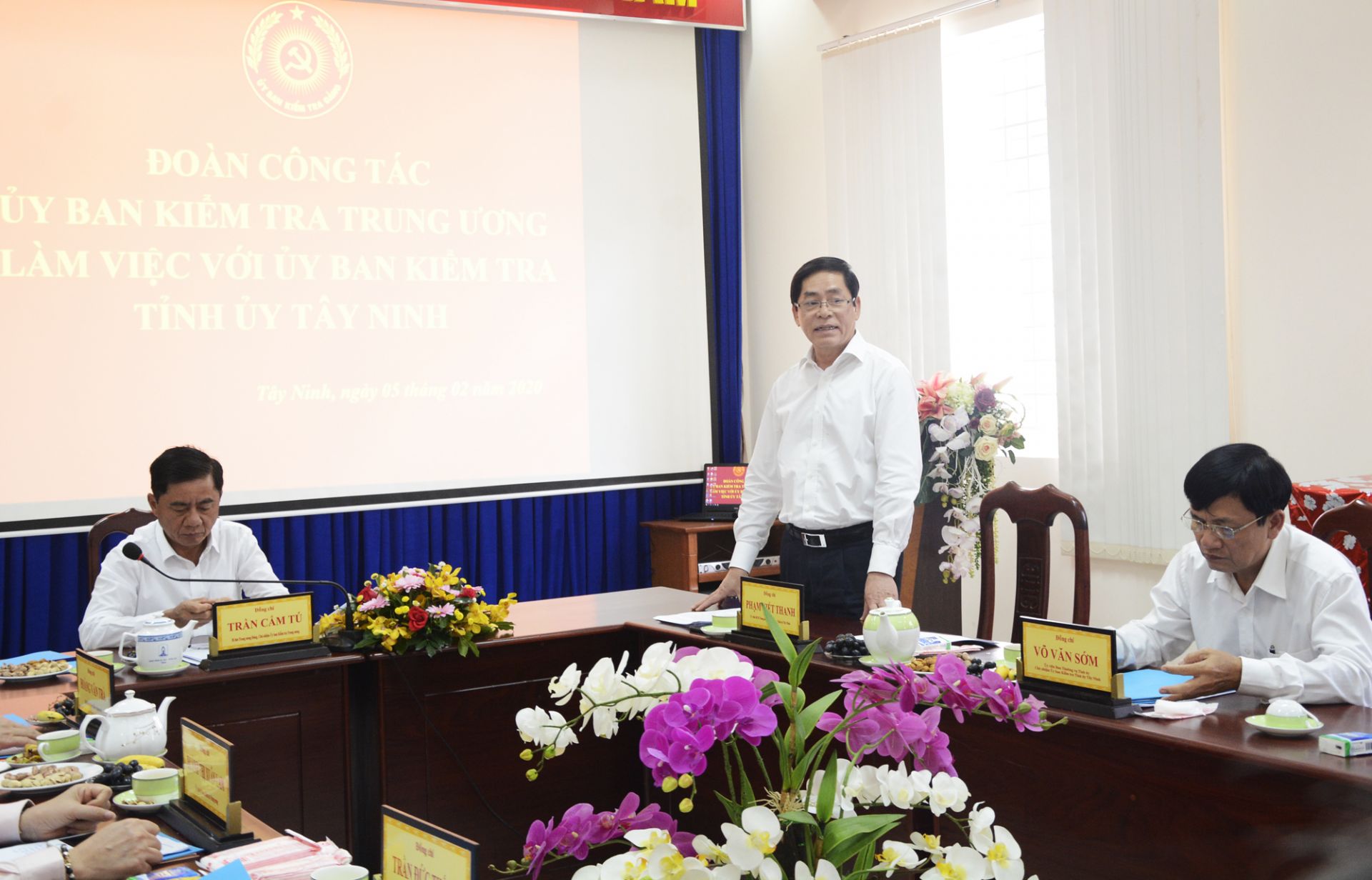 Kết luận buổi làm việc, ông Trần Cẩm Tú – Bí thư Trung ương Đảng, Chủ nhiệm UBKT Trung ương đánh giá cao những kết quả UBKT Tỉnh uỷ Tây Ninh đạt được trong năm qua. Chủ nhiệm UBKT Trung ương yêu cầu, năm 2020, UBKT Tỉnh ủy cần tăng cường công tác kiểm tra, giám sát gắn với vai trò người đứng đầu tổ chức Đảng; tập trung cho nhiệm vụ kiểm tra, giám sát phục vụ đại hội đảng bộ các cấp. UBKT tỉnh phải kiểm tra, giám sát chặt chẽ tới từng tổ chức đảng; xử lý tốt, kịp thời các vấn đề mới phát sinh, gây bức xúc trong xã hội do nhân dân và báo chí phản ánh; các tổ chức, địa phương, cá nhân nào có dấu hiệu vi phạm là phải kiểm tra ngay.