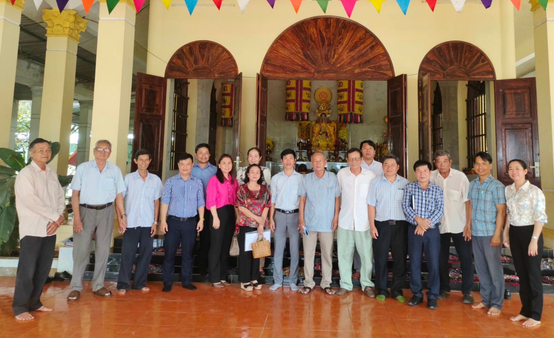 Đoàn khảo sát nghe đại diện Ban quản lý các cơ sở tín ngưỡng thông tin về tình hình hoạt động; công tác tập hợp, vận động, phát huy vai trò của các cơ sở tín ngưỡng trong thực hiện các phong trào thi đua yêu nước ở địa phương; việc giữ gìn và phát huy các giá trị văn hoá ở cơ sở tín ngưỡng hiện nay gắn với thực hiện cơ sở tín ngưỡng văn minh, bài trừ mê tín dị đoan; những đóng góp trong công tác an sinh xã hội của các cơ sở tín ngưỡng thời gian qua tại địa phương.