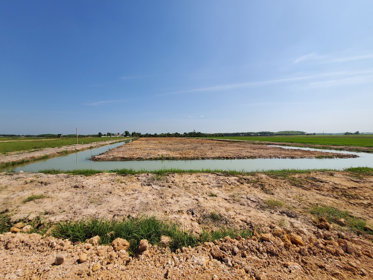 Khu đất ông Trần Tất Hùng tự ý san lắp mặt bằng trên đất chuyên trồng lúa.