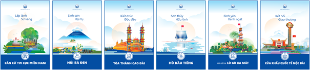Bộ nhận diện thương hiệu hình ảnh tỉnh Tây Ninh, bao gồm logo, biểu tượng vui, hình ảnh đồ họa, tín hiệu đồ họa, và hình ảnh chủ đạo, đóng vai trò quan trọng trong việc phổ biến chuỗi giá trị bản sắc thương hiệu và thúc đẩy phát triển kinh tế bền vững.