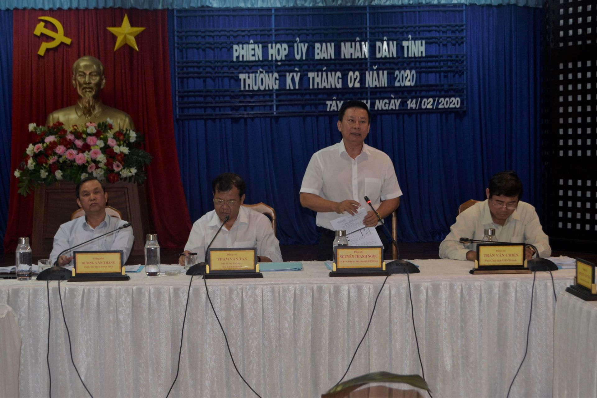 Ngày 14.2, UBND tỉnh đã tổ chức phiên họp thường kỳ tháng 2.2020. Chủ tịch UBND tỉnh Phạm Văn Tân cùng các Phó Chủ tịch Nguyễn Thanh Ngọc, Trần Văn Chiến, Dương Văn Thắng đồng chủ trì phiên họp.
