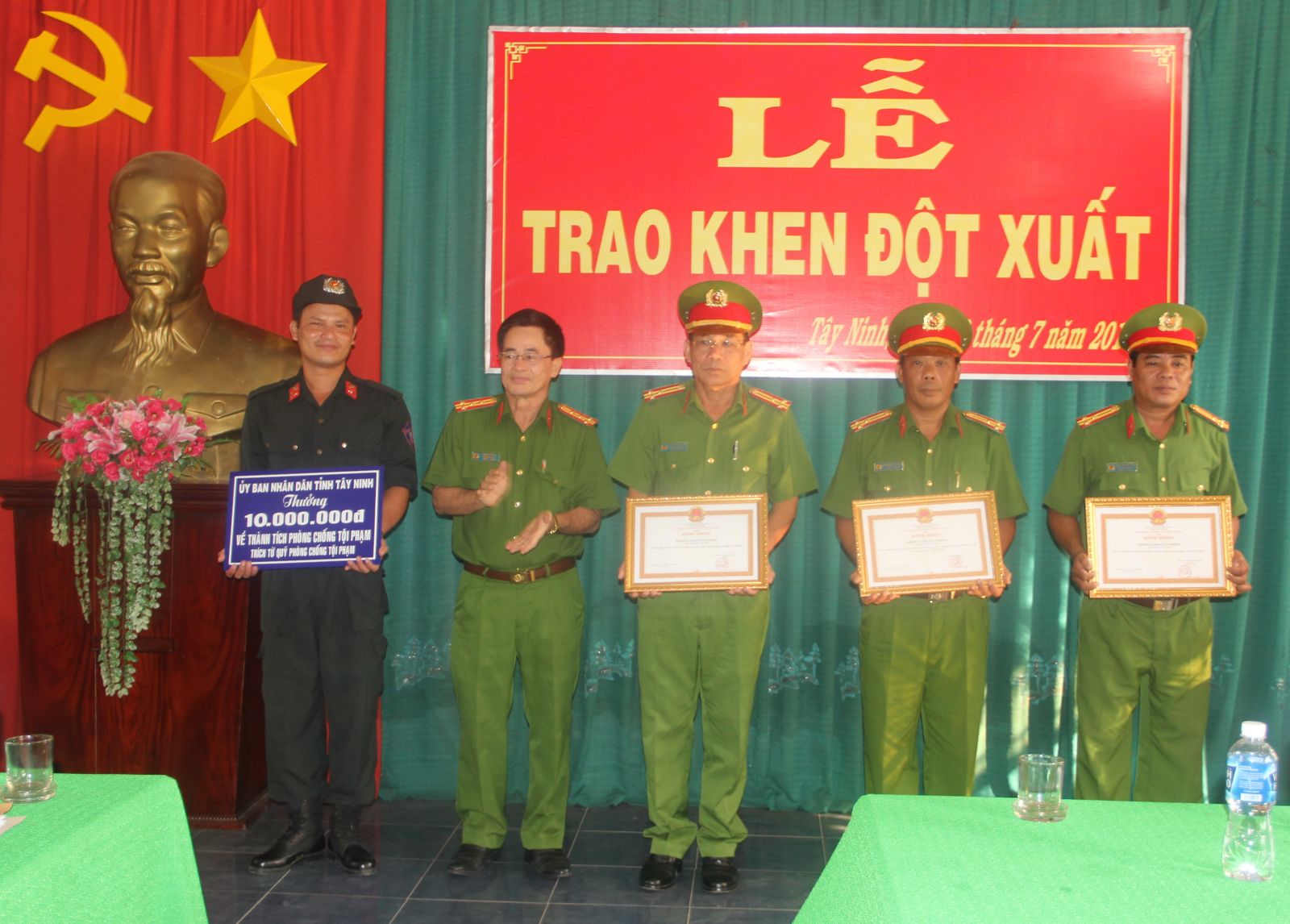 UBND tỉnh cũng trao bằng khen và tiền thưởng 3 triệu đồng cho hai cá nhân là thượng tá Nguyễn Ngọc Thành- Phó trưởng phòng phụ trách Phòng Cảnh sát cơ động, thiếu tá Phan Văn Luyến- đại đội trưởng Đại đội Cảnh sát cơ động, do đã lập được nhiều thành tích xuất sắc trong công tác đấu tranh phòng, chống tội phạm.