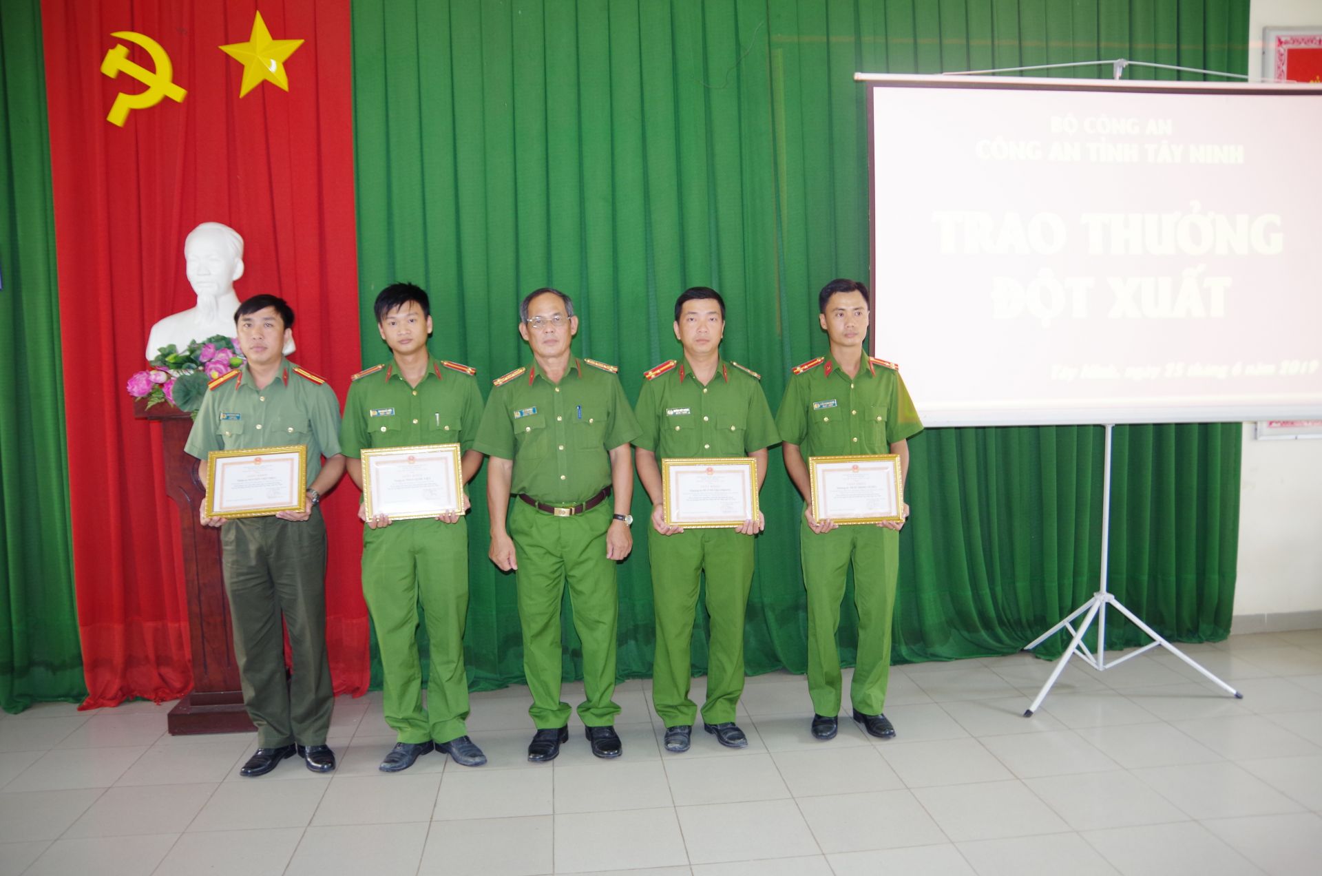 Dịp này, Ban Giám đốc Công an tỉnh thưởng 5 triệu đồng cho Phòng CSHS, Phòng Cảnh sát cơ động; thưởng 3 triệu đồng cho Phòng Kỹ thuật nghiệp vụ, Phòng Ngoại tuyến CA tỉnh và tặng giấy khen cho 5 cá nhân có thành tích xuất sắc.