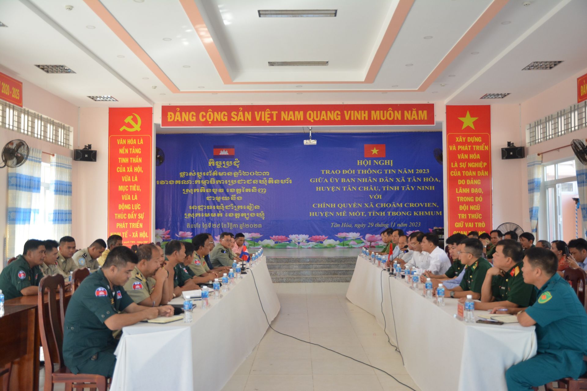 Xã Tân Hòa có đường biên giới tiếp giáp với xã Choăm Crovien, huyện Mê Mốt, tỉnh Tbong Khmum dài trên 10km. Tại buổi hội đàm, hai bên trao đổi và thông báo tình hình phát triển kinh tế- xã hội, an ninh trật tự trong thời gian qua trên tuyến biên giới giữa hai xã.