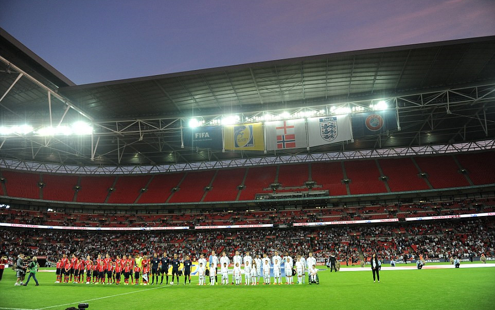 Trận giao hữu giữa Anh và NaUy vào cuối năm 2014 trên sân Wembley có số lượng khán giả thấp kỷ lục. Ảnh: Sportsmail.