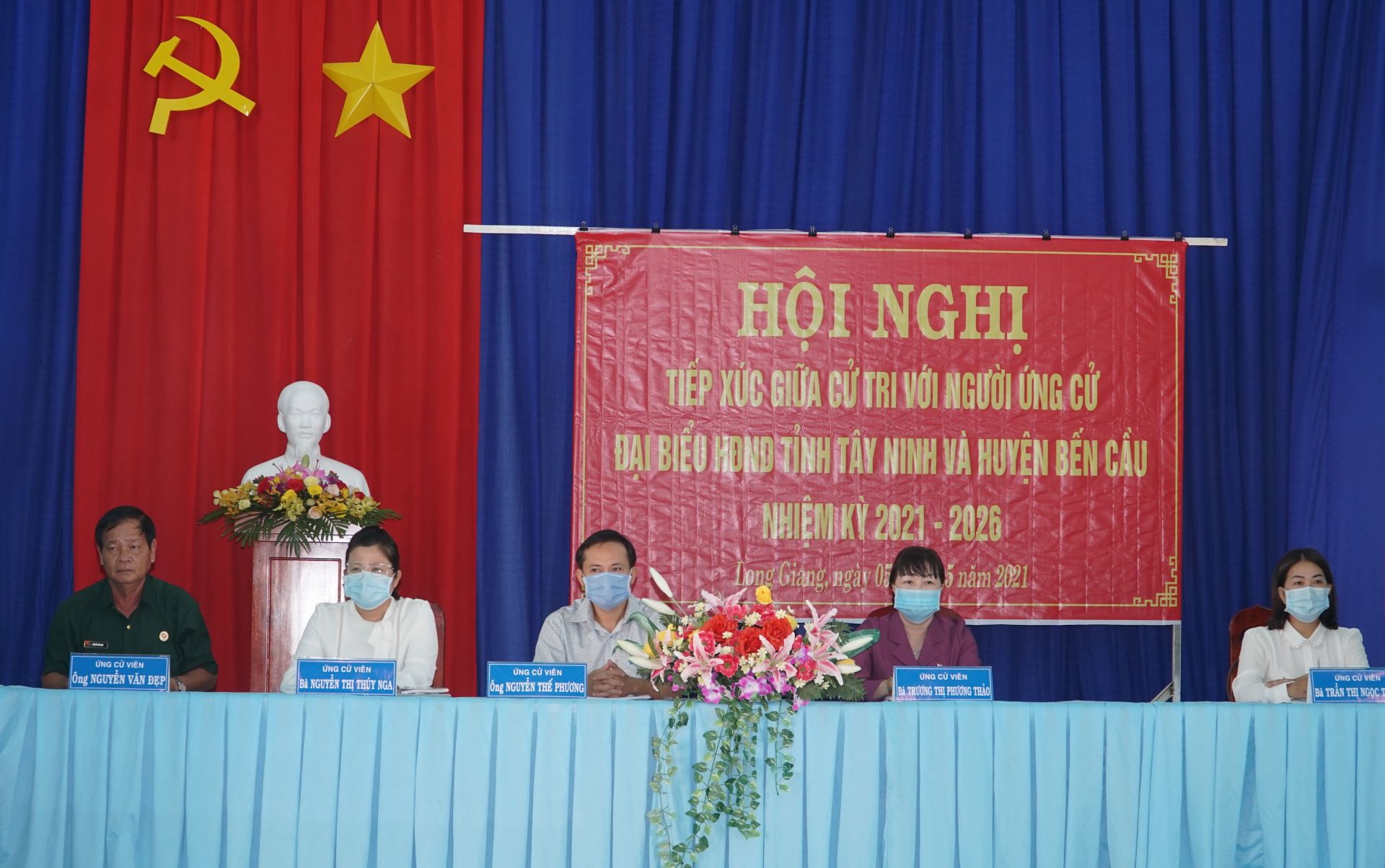 Các ứng cử viên HĐND tỉnh gồm ông Nguyễn Văn Đẹp-Chủ tịch Hội Cựu chiến binh tỉnh, bà Nguyễn Thị Thúy Nga-Trưởng phòng Quản lý nhà và vật liệu xây dựng Sở Xây dựng, ông Nguyễn Thế Phương-Trưởng phòng Quản lý công nghiệp năng lượng Sở Công thương, bà Trương Thị Phương Thảo- Phó Bí thư thường trực Huyện ủy Bến Cầu và bà Trần Thị Ngọc Trinh- Bí thư Đảng ủy thị trấn Bến Cầu.