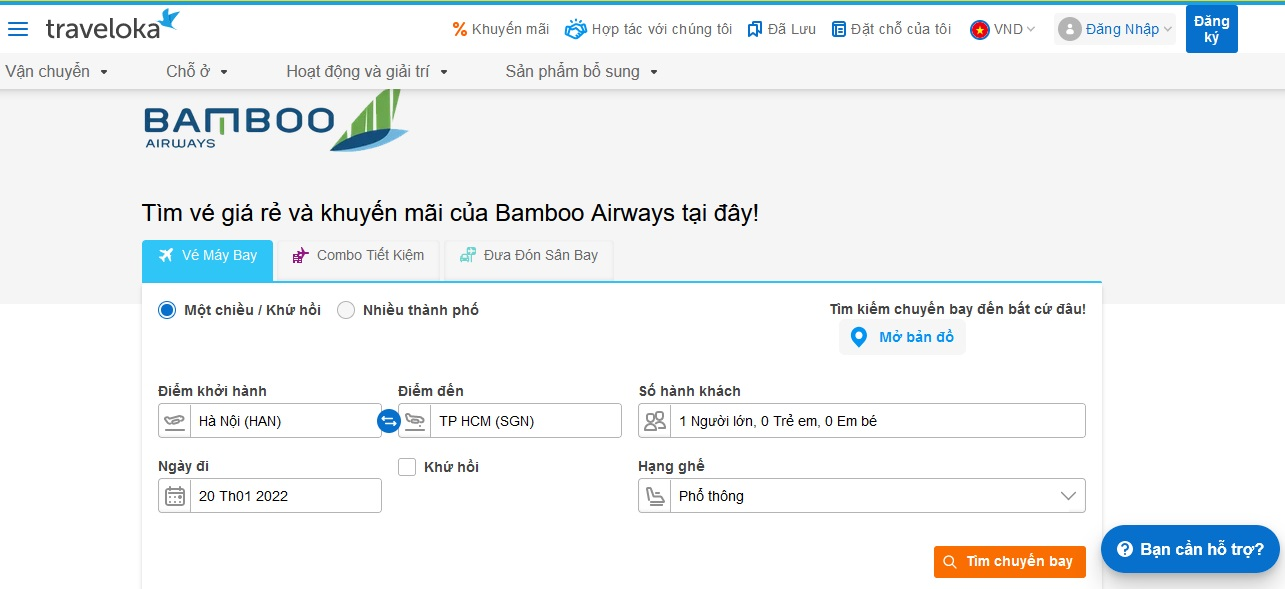 Cách đặt vé Bamboo Airways trên Traveloka