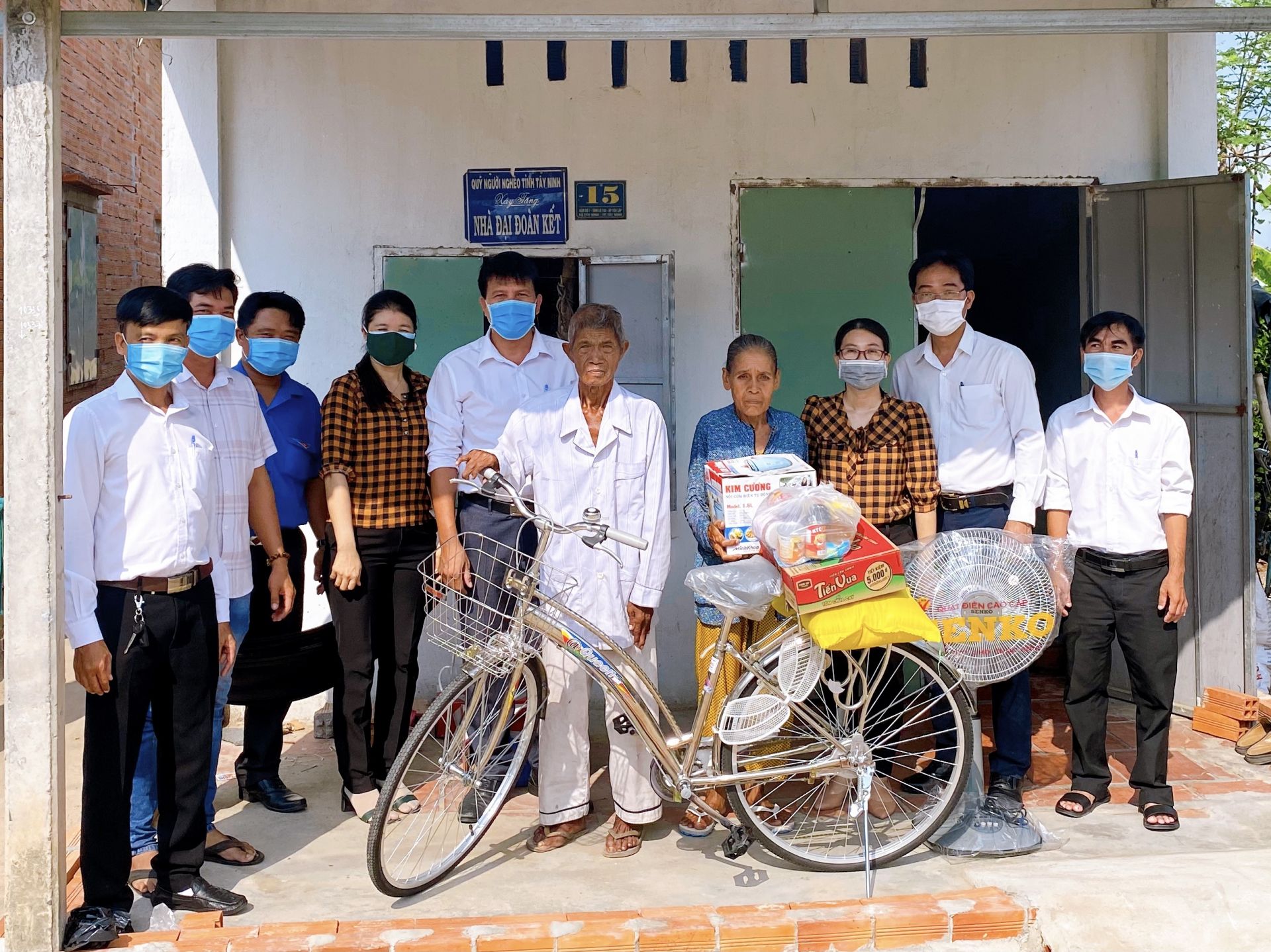 Dịp này, UBND xã Tân Bình cùng các ngành, đoàn thể xã trao tặng xe đạp và một số nhu yếu phẩm cho gia đình ông Thư, động viên gia đình vượt qua khó khăn.