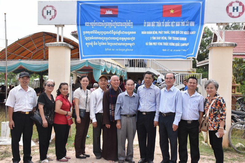 Nhân kỷ niệm 50 năm thiết lập quan hệ ngoại giao Việt Nam - Campuchia, ngày 17.7, đoàn công tác do ông Nguyễn Văn Nhiếm- Phó Chủ tịch UB.MTTQVN tỉnh làm trưởng đoàn đã đến khám bệnh, cấp thuốc miễn phí, tặng quà cho người dân tỉnh Svay Rieng (Vương quốc Campuchia).