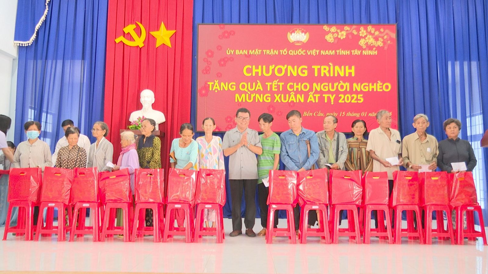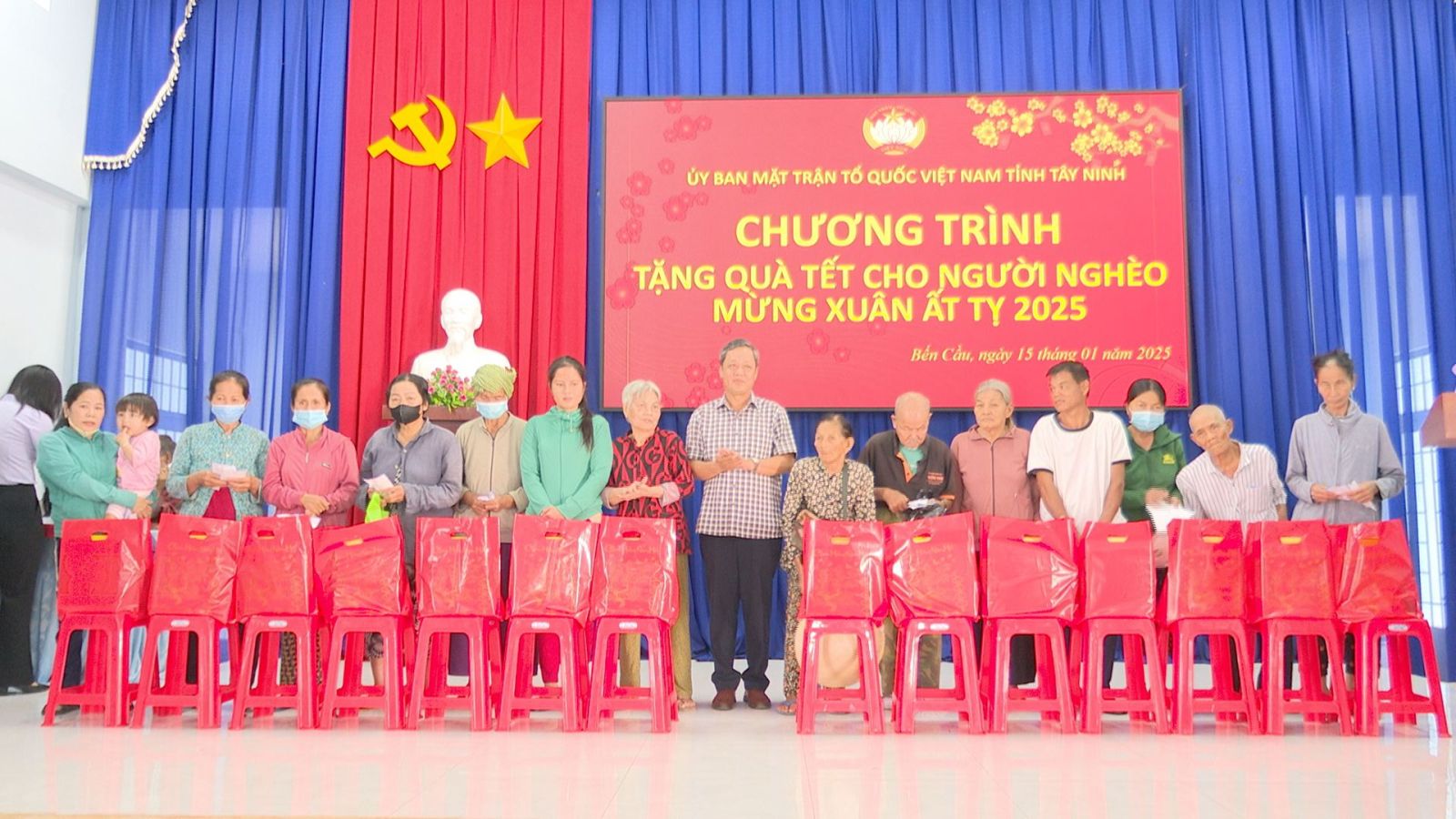 Đợt này, Uỷ ban MTTQVN tỉnh và Ban vận động Quỹ Vì người nghèo tỉnh Tây Ninh vận động, trao tặng 38 phần quà tết cho hộ nghèo, cận nghèo, hộ khó khăn đột xuất tại xã An Thạnh; trao 38 phần quà tại xã Lợi Thuận; 35 phần quà tại xã Tiên Thuận và 39 phần quà tại thị trấn Bến Cầu. Mỗi phần quà trị giá 700.000 đồng, bao gồm 500.000 đồng tiền mặt và nhu yếu phẩm; tổng trị giá quà tặng 105 triệu đồng.