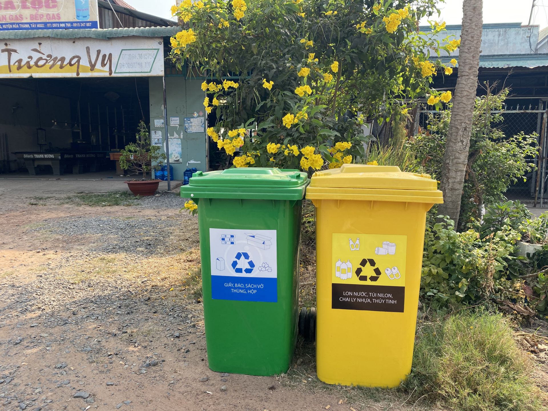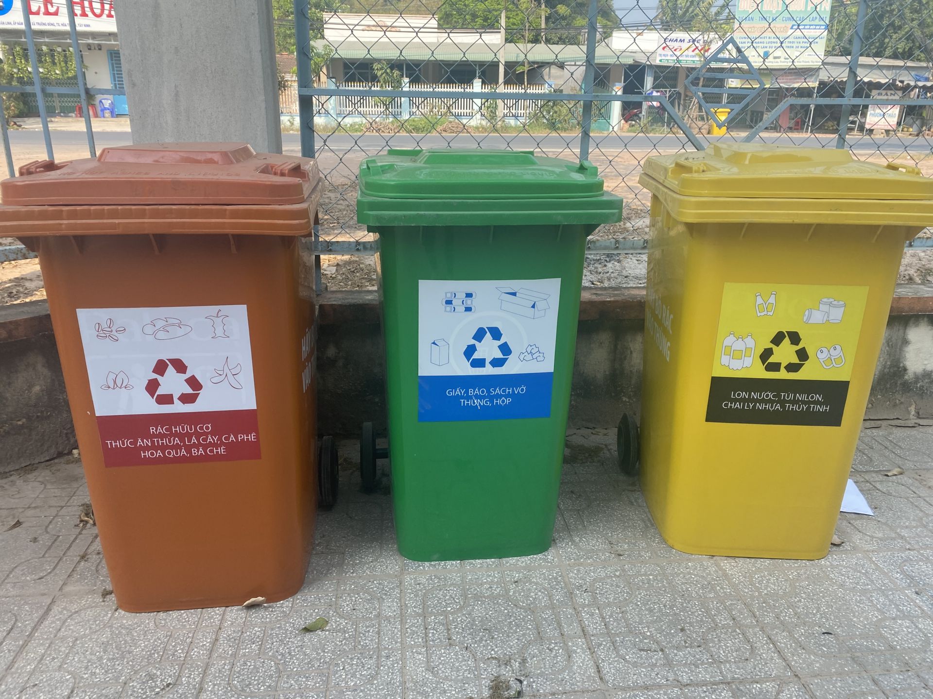 Mỗi điểm được địa phương trang bị 3 thùng rác để người dân tự phân loại rác thải tại nguồn gồm rác hữu cơ, vô cơ và chất thải rắn.