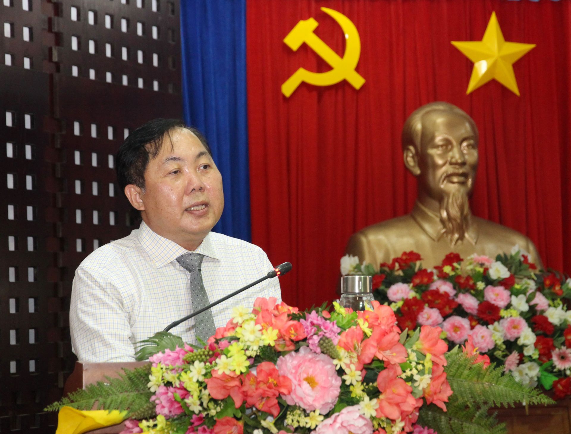 Ông Trương Văn Hùng – Chánh Văn phòng Đoàn ĐBQH, HĐND, UBND tỉnh phát biểu tại hội nghị