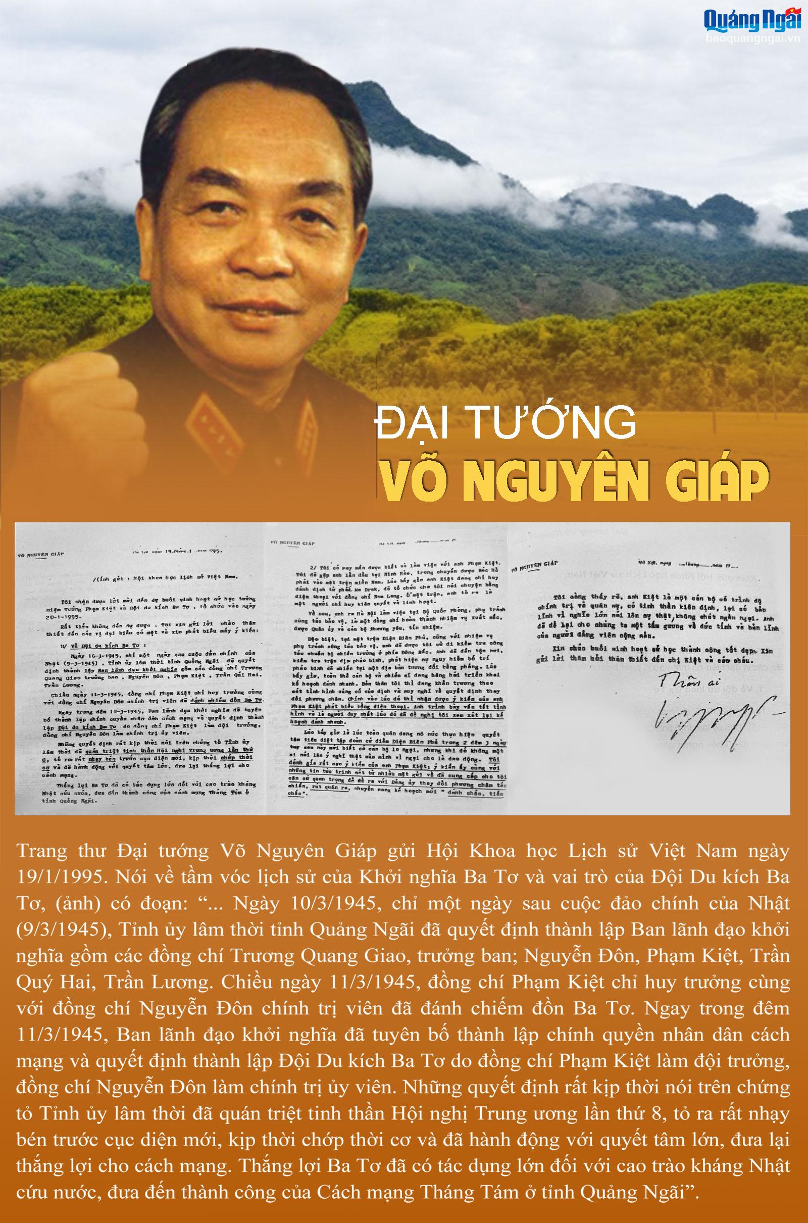 Ra đời trong thời khắc quan trọng của lịch sử dân tộc, Đội Du kích Ba Tơ từ 28 đồng chí ban đầu đã nhanh chóng phát triển thành một lực lượng vũ trang hùng mạnh. Tám mươi năm đã trôi qua, nhưng lời thề sắt son “Hy sinh vì Tổ quốc” của Đội Du kích Ba Tơ vẫn còn mãi với thời gian, trở thành truyền thống cách mạng quý báu của lực lượng vũ trang Quân khu 5, thấm vào từng trang sử sách để lại cho mai sau.