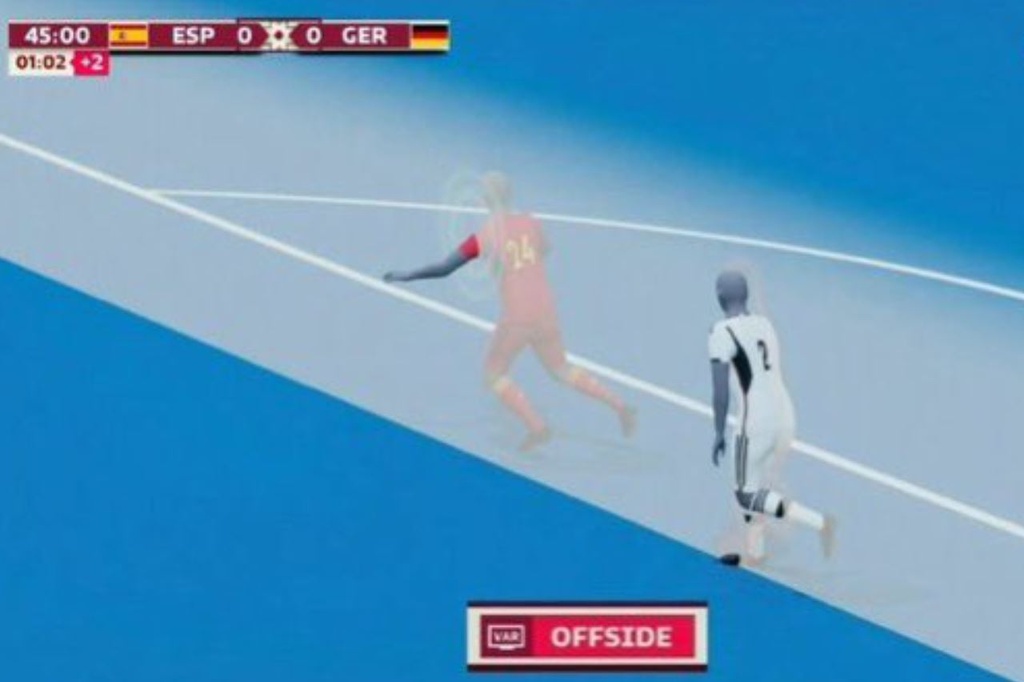 Cả VAR và công nghệ bắt việt vị bán tự động can thiệp để xác định Rudiger (số 2) việt vị ở hiệp một.