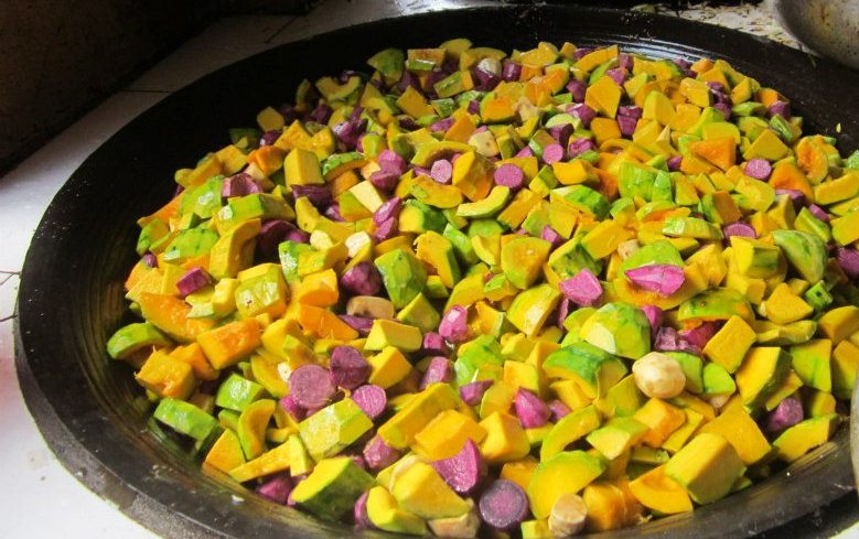 “Chỉ cần một trái mít non trong vườn, tôi có thể làm nhiều món. Đơn giản nhất là mít sống, gọt ra rồi xắt mỏng, trộn với rau thơm làm món rau ghém. Cầu kỳ hơn chút thì đem luộc chín, sau đó trộn với dầu phi, đậu phộng, rau răm thành món nộm cuốn bánh tráng, hay mít luộc đó đem kho với nước dừa tươi hoặc nước cốt dừa thành món mít kho. Đến mùa bình tinh, ra sau vườn đào lên, phần nhiều đem làm bột, ăn ngay thì giã ra, trộn với chút gia vị, hành lá, chiên lên là cũng có thêm một món ăn mới, lạ miệng rồi”, bà Thi kể.