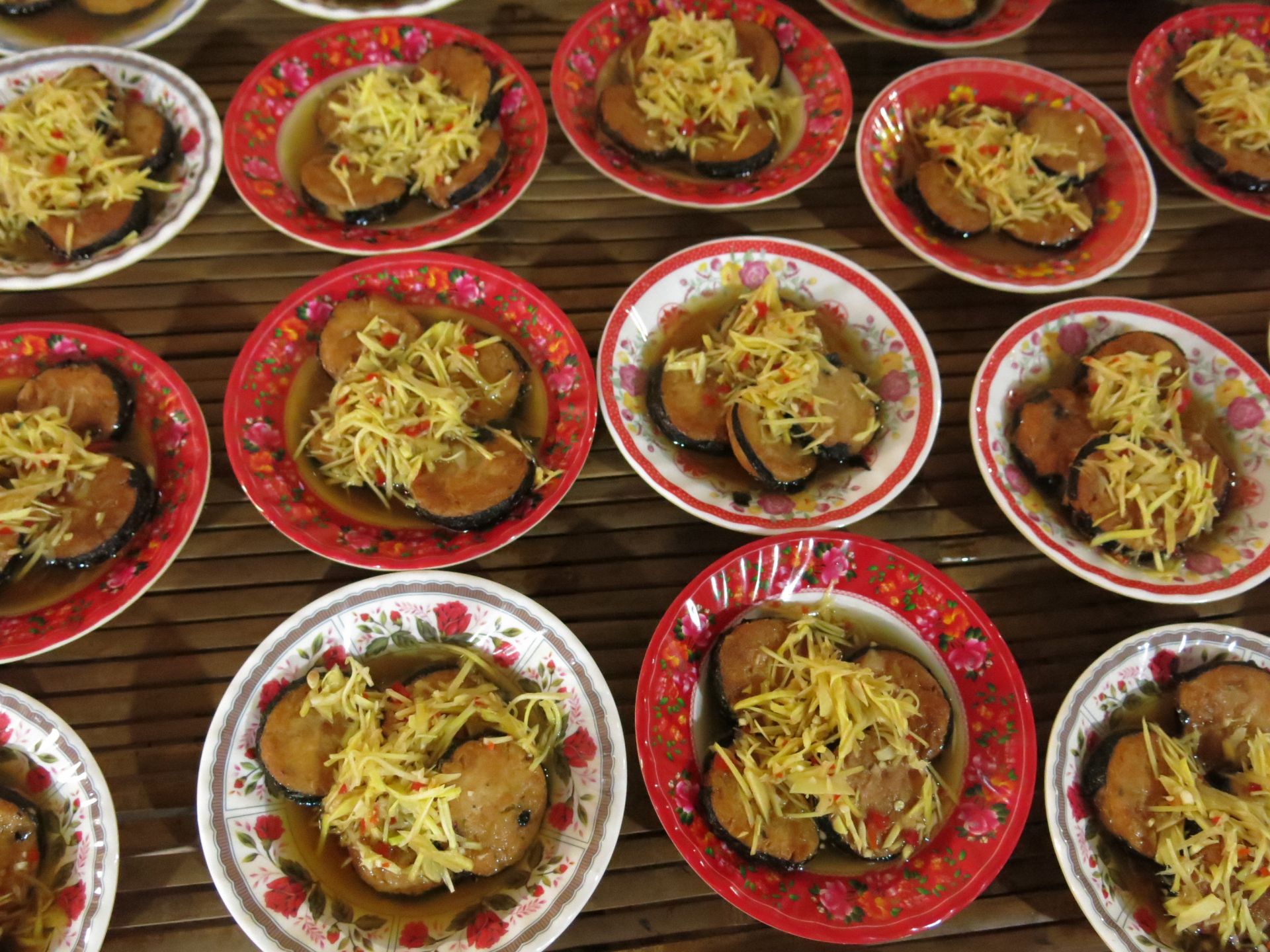 Bà Nguyễn Thị Thi (67 tuổi, ngụ xã Trường Đông, thị xã Hoà Thành) cho biết, bà ăn chay hơn 30 năm qua. Ăn chay trường kỳ nên thực đơn bữa ăn thường xuyên được bà thay đổi để không bị ngán: khi thì nghệ kho muối quẹt, canh chua lá giang nấu với đậu bắp, hay sả kho tương, mắm đậu xào, bắp chuối luộc chấm tương hột… Tất cả đều là rau củ có sẵn trong vườn nhà.