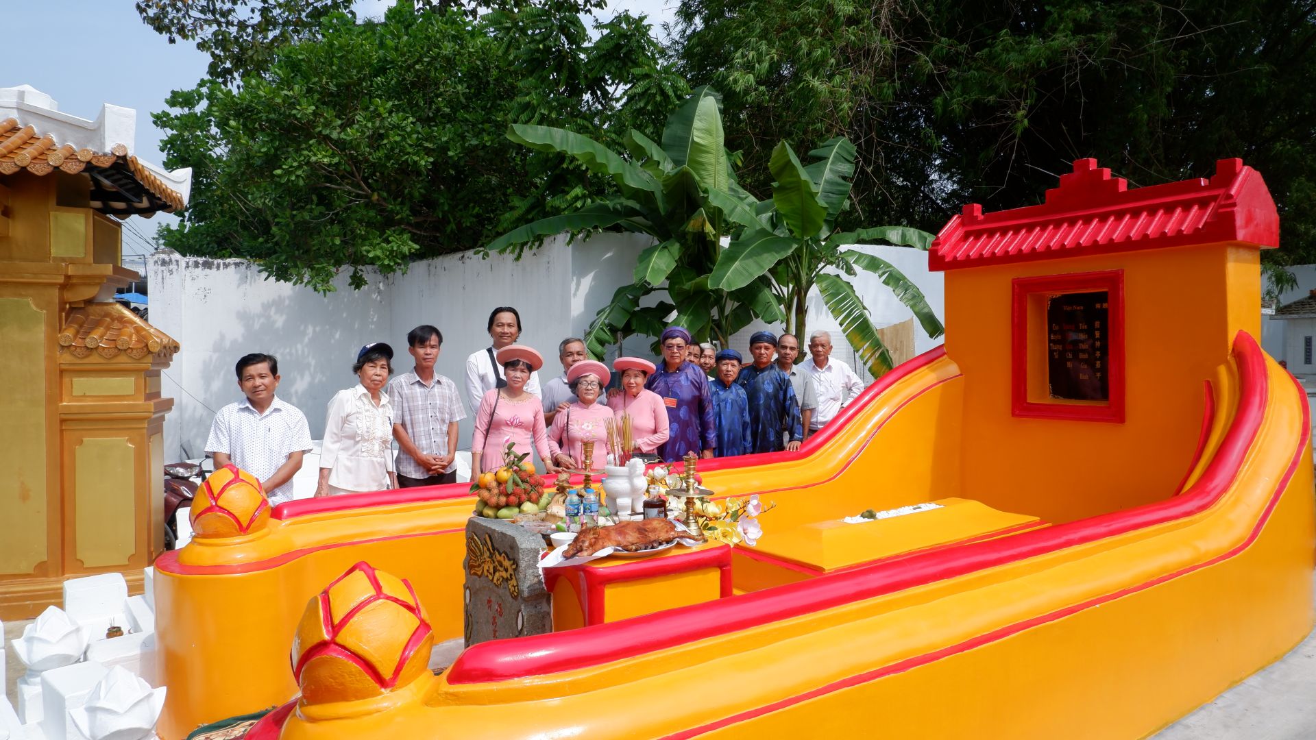 Sau Tết Nguyên đán Ất Tỵ, nhà nghiên cứu Dương Công Đức cùng người dân nơi đây tiếp tục trùng tu mộ của hai vị tiền hiền Dương Tấn Phong và tiền hiền Dương Tấn Quá, tôn tạo thêm cảnh quan trong khu nghĩa trang. Đến trung tuần tháng 4 (nông lịch) thì việc thành. Hai ngôi mộ được trùng tu bề thế theo kiểu thức mộ cổ vùng Nam bộ với bình phong, tường bao quanh mộ, bia mộ, trên các mộ trang trí hoa sen, sơn màu truyền thống, riêng mộ tiền hiền Dương Tấn Phong có cổng dẫn vào xây thấp để người vào thăm mộ cúi đầu chào tiền nhân.