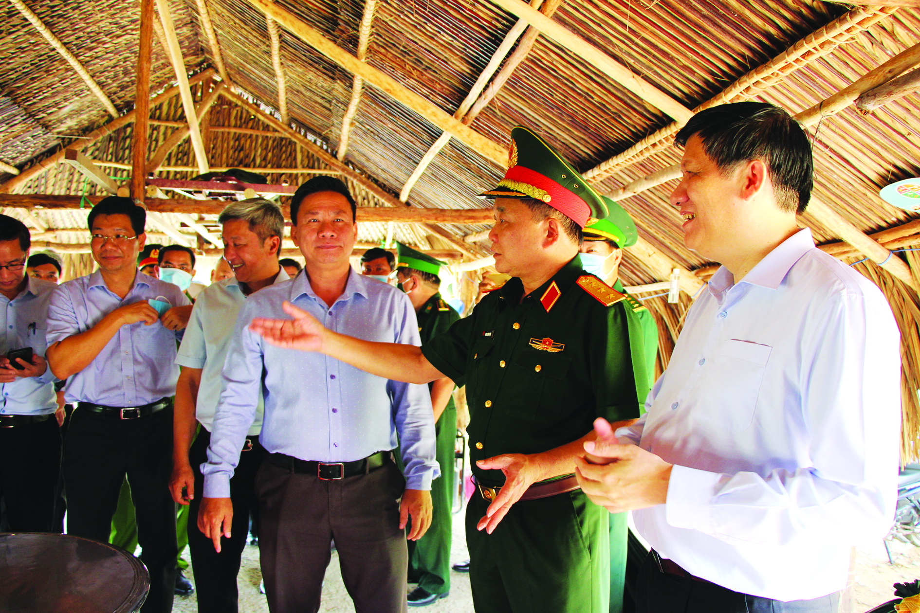 Bộ trưởng Bộ Y tế Nguyễn Thanh Long động viên tinh thần các chiến sĩ làm nhiệm vụ chốt, chặn phòng, chống dịch Covid-19 trên tuyến biên giới.
