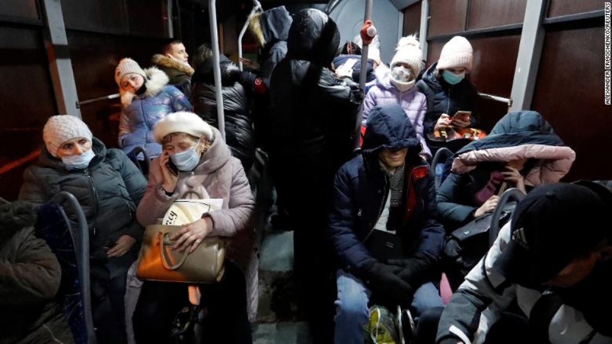 Người dân Donestk trên chuyến xe buýt sơ tán sang Nga ngày 18/2/2022. Ảnh: Reuters