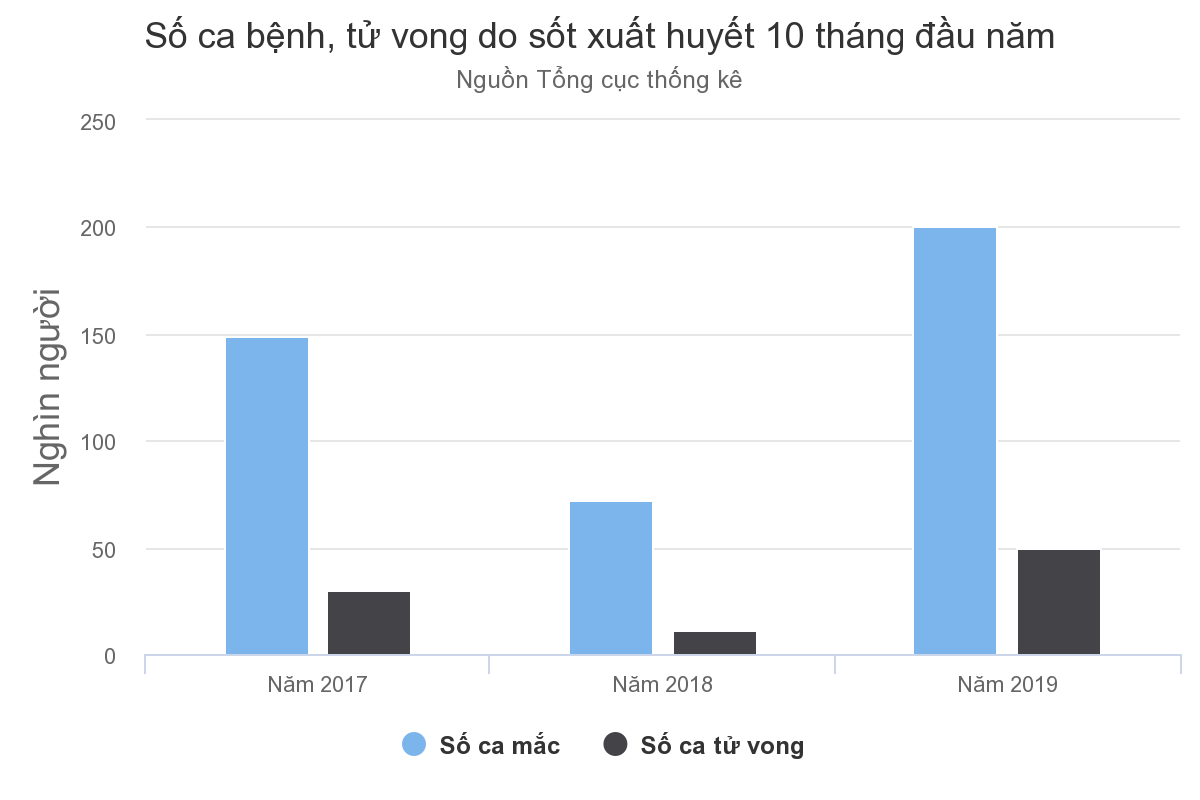 Ông Phạm Hùng, Trưởng Phòng kiểm soát bệnh truyền nhiễm, Cục Y tế dự phòng, Bộ Y tế, cho biết 10 tháng đầu năm ghi nhận hơn 200.000 người mắc sốt xuất huyết trên cả nước, so cùng kỳ năm ngoái có khoảng 72.000 bệnh nhân. 50 người đã tử vong, tăng gấp gần 5 lần cùng kỳ.