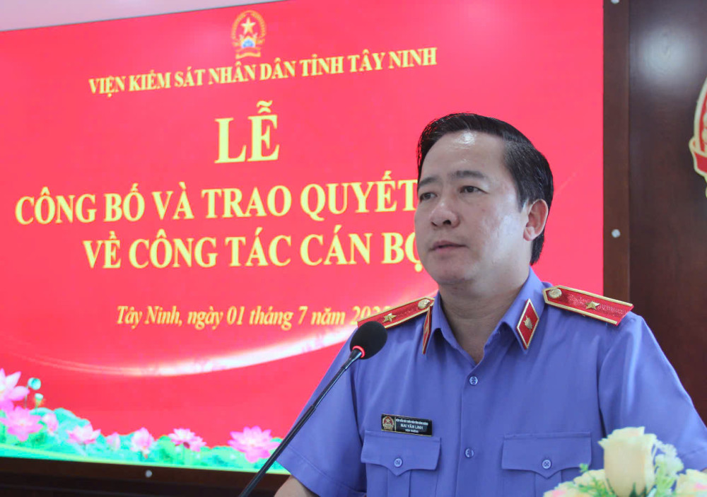 Chiều 01/7, Viện Kiểm sát nhân dân (VKSND) tỉnh Tây Ninh tổ chức lễ công bố và trao quyết định về công tác cán bộ. Viện trưởng VKSND tỉnh - Mai Văn Linh chủ trì buổi lễ.