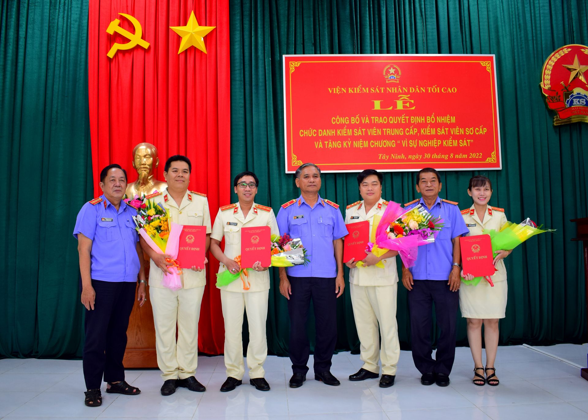 Chiều 30.8.2022, được sự uỷ quyền của Viện Kiểm sát nhân dân (VKSND) tối cao, VKSND tỉnh Tây Ninh tổ chức lễ công bố và trao quyết định bổ nhiệm chức danh kiểm sát viên trung cấp, kiểm sát viên sơ cấp cho công chức đã trúng tuyển trong kỳ thi tuyển kiểm sát viên ngành Kiểm sát đợt 2 năm 2021.