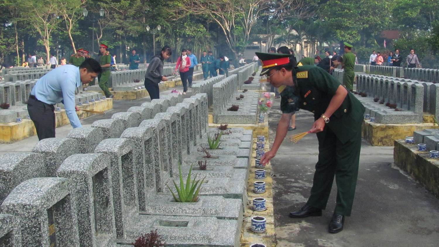 Nhân kỷ niệm 73 năm ngày thành lập Quân đội nhân dân Việt Nam (22.12.1944-2017), sáng 22.12, lãnh đạo các huyện/thành phố đã tổ chức đoàn đến viếng, thắp hương tại nghĩa trang liệt sĩ.