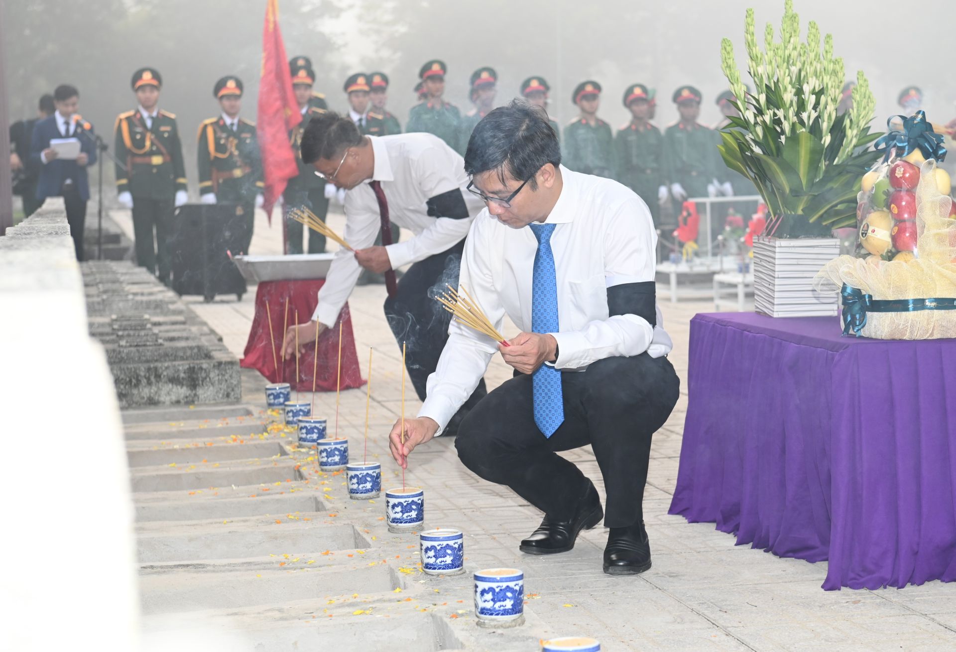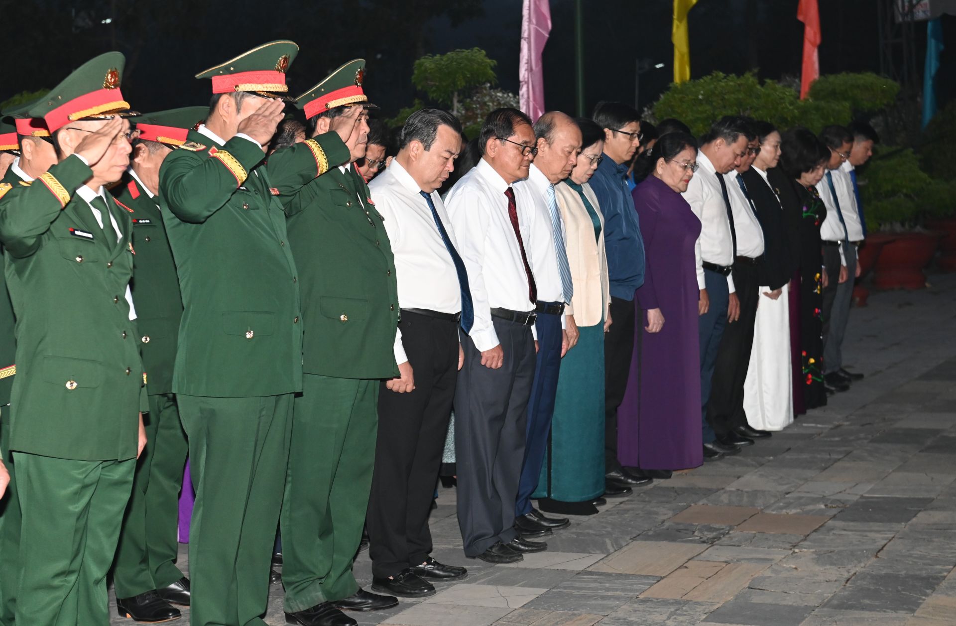 Các vị lãnh đạo mặc niệm tưởng nhớ hương hồn những anh hùng liệt sĩ.