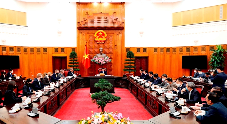 Trao đổi về việc triển khai các kết quả Hội nghị COP26, Thủ tướng Phạm Minh Chính cho biết, Đảng và Nhà nước Việt Nam đã xác định ứng phó với biến đổi khí hậu là một trong những nhiệm vụ khó khăn nhưng trọng tâm, cấp bách. Với cách tiếp cận toàn cầu, toàn dân và hành động nhanh chóng, mạnh mẽ, tổng thể, toàn diện, Việt Nam tích cực, chủ động tham gia cùng cộng đồng quốc tế trong giảm phát thải khí nhà kính, thích ứng với biến đổi khí hậu; coi đây là cơ hội để chuyển đổi mô hình phát triển theo hướng xanh, tuần hoàn, carbon thấp.