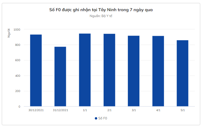 Theo Thường trực Sở Chỉ huy phòng, chống dịch bệnh của tỉnh, ngày 5/1, Tây Ninh ghi nhận 867 ca dương tính với SARS-CoV-2 qua test sàng lọc, giảm 34 ca so với ngày 4/1. Những ngày gần đây, biểu đồ số F0 ở địa phương này có xu hướng đi ngang.