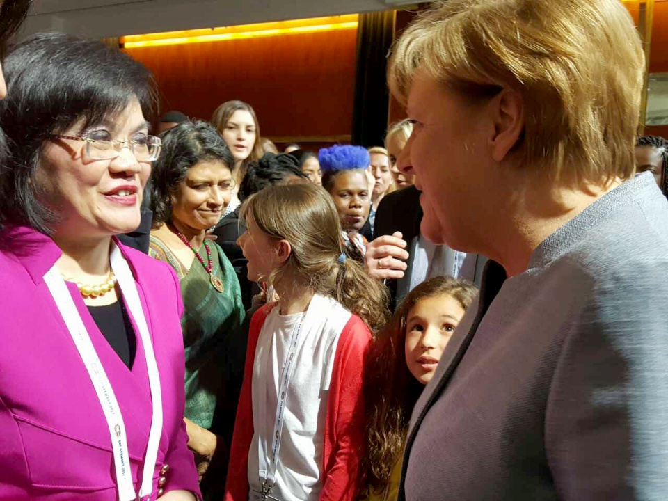 Đại sứ Nguyễn Nguyệt Nga trao đổi với Thủ tướng Đức Angela Merkel - Chủ tịch G20 năm 2017.