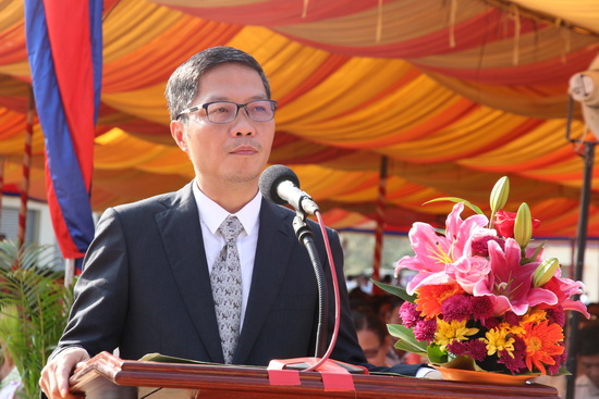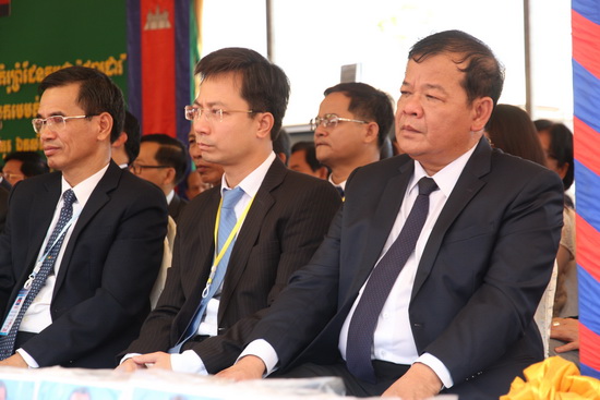 Chủ trì buổi lễ là Phó Thủ tướng Chính phủ Trịnh Đình Dũng và Thủ tướng Campuchia Samdech Techo Hun Sen.