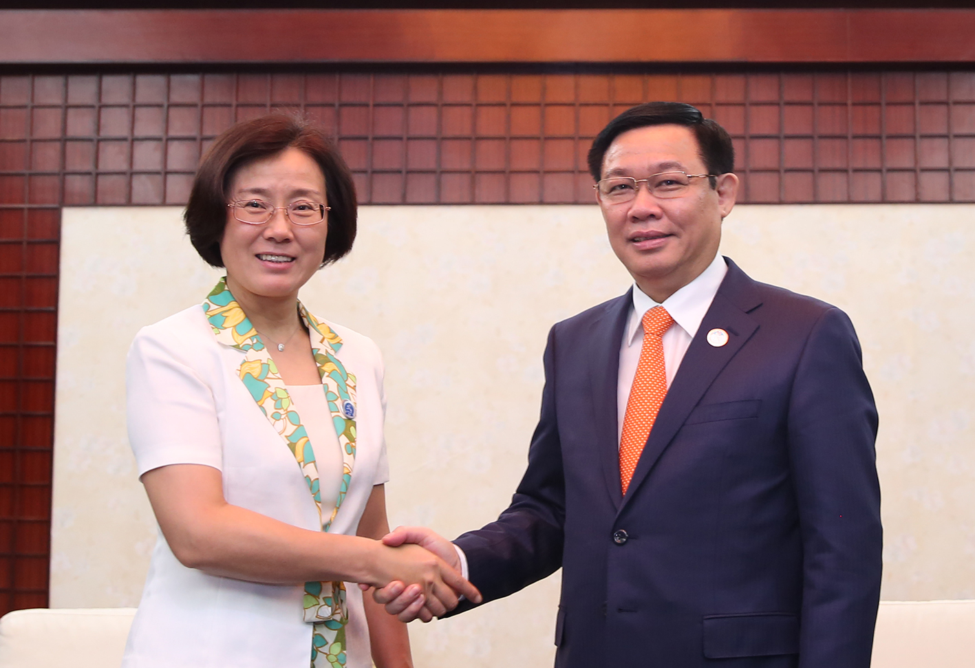 Phó Thủ tướng Vương Đình Huệ tiếp bà Ngô Trung Quỳnh, Phó Tỉnh trưởng tỉnh Giang Tây. Ảnh: VGP/Thành Chung