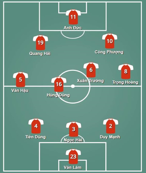 Đội hình dự kiến của Việt Nam trước Thái Lan.