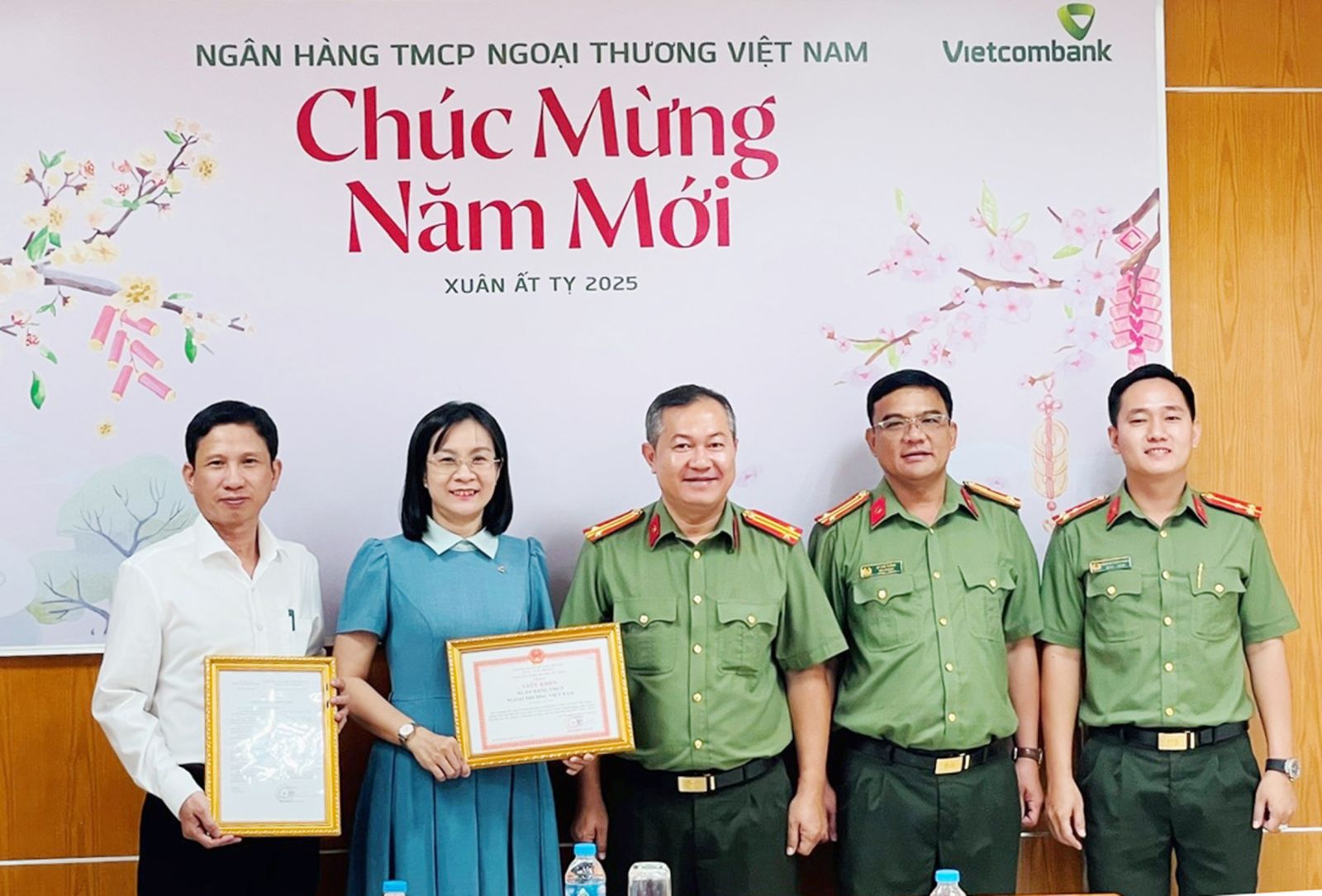 Thừa uỷ quyền của Giám đốc Công an tỉnh, Trung tá Huỳnh Thông, Phó trưởng Phòng Bảo vệ an ninh kinh tế (BV ANKT) Công an tỉnh vừa trao tặng giấy khen của Giám đốc Công an tỉnh Tây Ninh cho tập thể Vietcombank Tây Ninh đã có những đóng góp tích cực trong 10 năm thực hiện Chỉ thị số 07/CT-BCA của Bộ Công an về “Đẩy mạnh phong trào toàn dân bảo vệ an ninh Tổ quốc trong cơ quan, doanh nghiệp, nhà trường đáp ứng yêu cầu, nhiệm vụ đảm bảo an ninh, trật tự trong tình hình mới”.