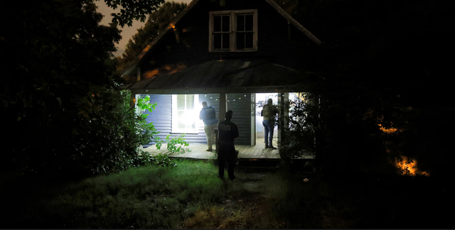 Cảnh sát lục soát nhà cũ của nghi phạm ở Greensboro, bang North Carolina. Ảnh: Reuters