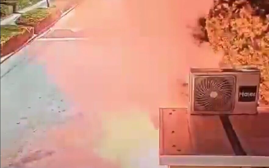 Nhà riêng của Thủ tướng Benjamin Netanyahu tại Caesarea bị tấn công bằng pháo sáng. Ảnh chụp màn hình video/The Times of Israel