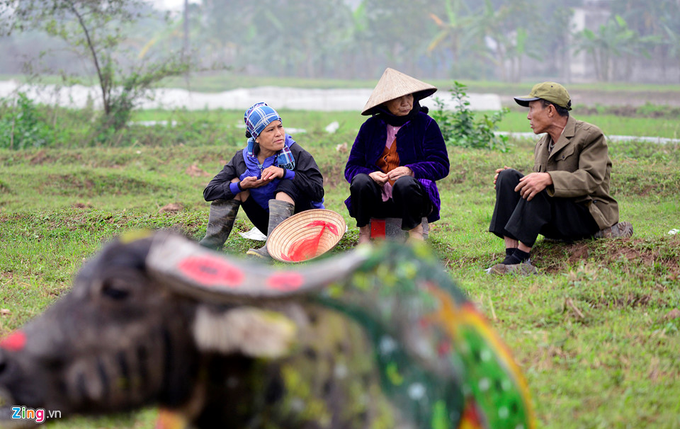 Trước hội chính một ngày, hàng chục chú trâu to khỏe được trang trí nhiều hình ảnh mùa xuân và Tết Mậu Tuất 2018 đã thi tài với nhau để chọn ra chú trâu khỏe và trang trí đẹp nhất. Chú trâu này sẽ được chọn để Vua Lê Đại Hành đi cày.