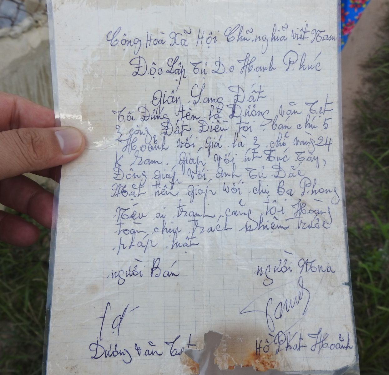 Giấy mua đất để làm đường đi của hộ ông Hoảnh (đoạn giáp với đường Trần Đại Nghĩa).