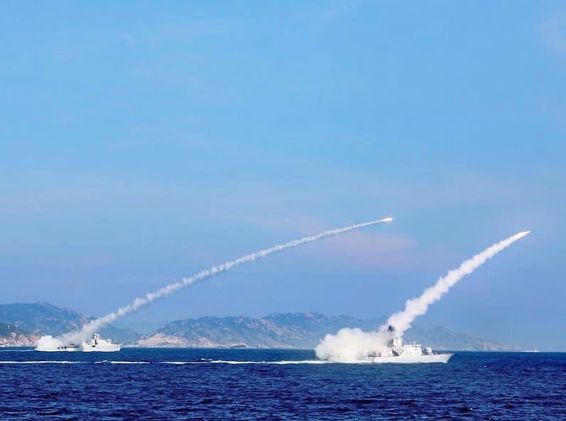 Lực lượng tàu chiến đấu 162 thực hành bắn tên lửa trong huấn luyện diễn tập.
