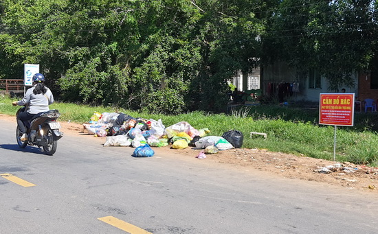 Rác xuất hiện bên cạnh biển báo cấm đổ rác. Ảnh chụp lúc 10 giờ ngày 11.8.2020