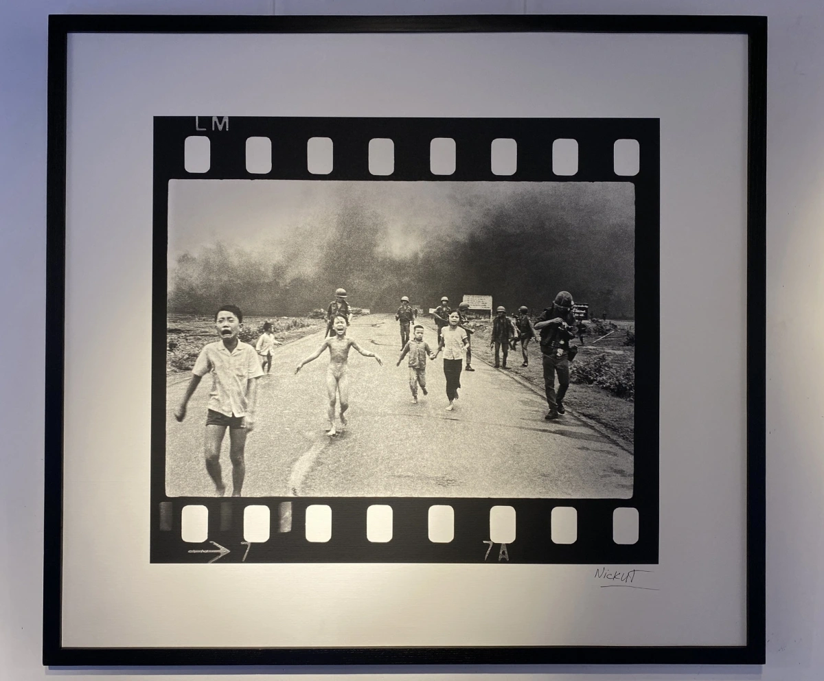 Bức ảnh "Em bé Napalm" được trưng bày trong một cuộc triển lãm. Ảnh: NLD