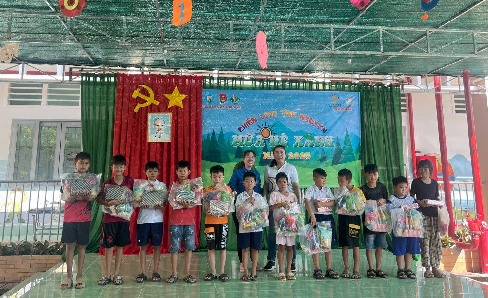 Tại đây, 40 đoàn viên tổ chức sơn vẽ nhà chòi, khuôn viên trường học; trao đồ dùng dạy học mầm non; tặng 30 phần quà, (mỗi phần trị giá 200 ngàn đồng), bánh, sữa cho các em học sinh với tổng chí phí thực hiện 24 triệu đồng do Đoàn trường vận động nhà hảo tâm hỗ trợ.