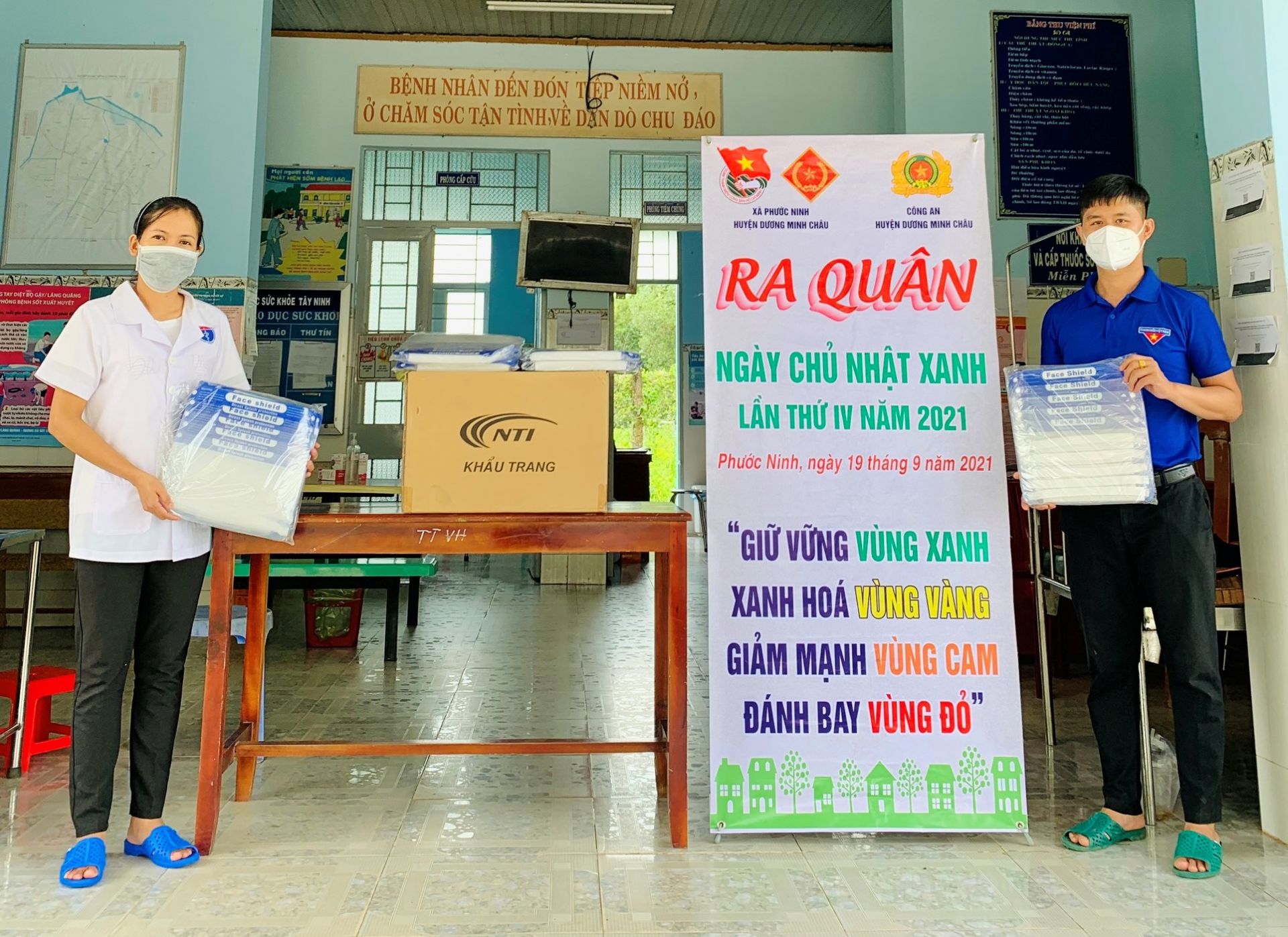 Trao tặng khẩu trang y tế và kính chắn giọt bắn cho Trạm Y tế xã.