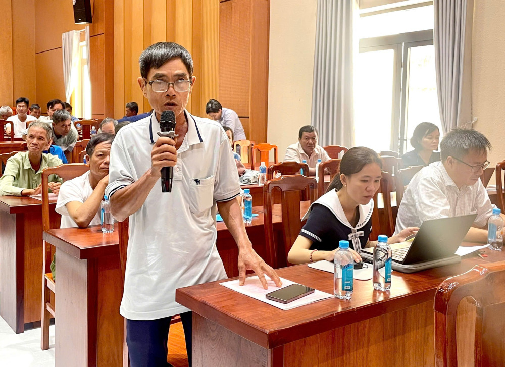 Đại diện Trung tâm Phát triển quỹ đất khu vực Hòa Thành trình bày kế hoạch phối hợp triển khai công tác thu hồi đất, điều tra, khảo sát, đo đạc, kiểm đếm, cũng như thực hiện bồi thường, hỗ trợ, tái định cư để phục vụ cho công tác giải phóng mặt bằng dự án, đặc biệt là phần đường dây đấu nối và hạ tầng phụ trợ.
