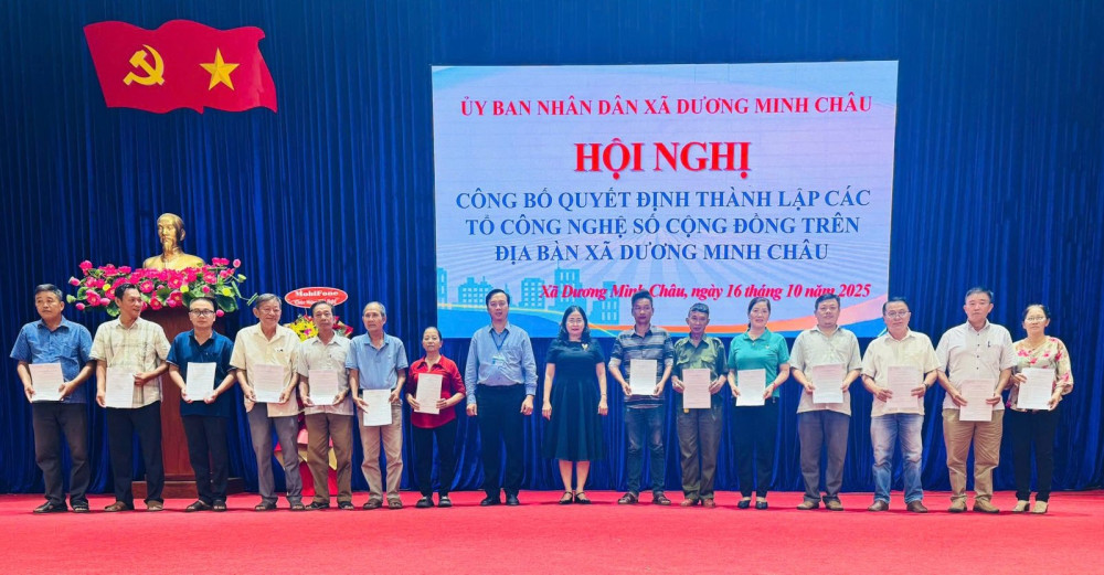 Tại buổi lễ, UBND xã Dương Minh Châu công bố quyết định thành lập Tổ công nghệ số cộng đồng xã; thông qua phương hướng, nhiệm vụ hoạt động giai đoạn 2025-2030; công bố quy chế hoạt động của Ban Chỉ đạo về phát triển khoa học, công nghệ, đổi mới sáng tạo, chuyển đổi số, cải cách hành chính và Đề án 06 của xã.