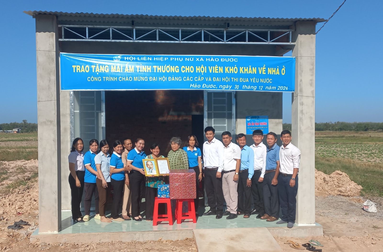 Ngày 30.12, Hội Liên hiệp Phụ nữ (LHPN) xã Hảo Đước (huyện Châu Thành) tổ chức lễ trao nhà Mái ấm tình thương cho chị Kim Thị Hiệp (sinh năm 1980, ngụ ấp Bàu Sen, xã Hảo Đước) là hội viên có hoàn cảnh khó khăn về nhà ở.