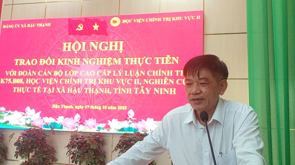 (BTNO) - Ngày 17/10, Đoàn cán bộ lớp Cao cấp Lý luận chính trị K75.B08, Học viện Chính trị khu vực II, do ông Phạm Tấn Xuân Tước – Giảng viên Học viện Chính trị khu vực II, Chủ nhiệm lớp làm trưởng đoàn, có chuyến thăm và làm việc tại UBND xã Hậu Thạnh, tỉnh Tây Ninh.