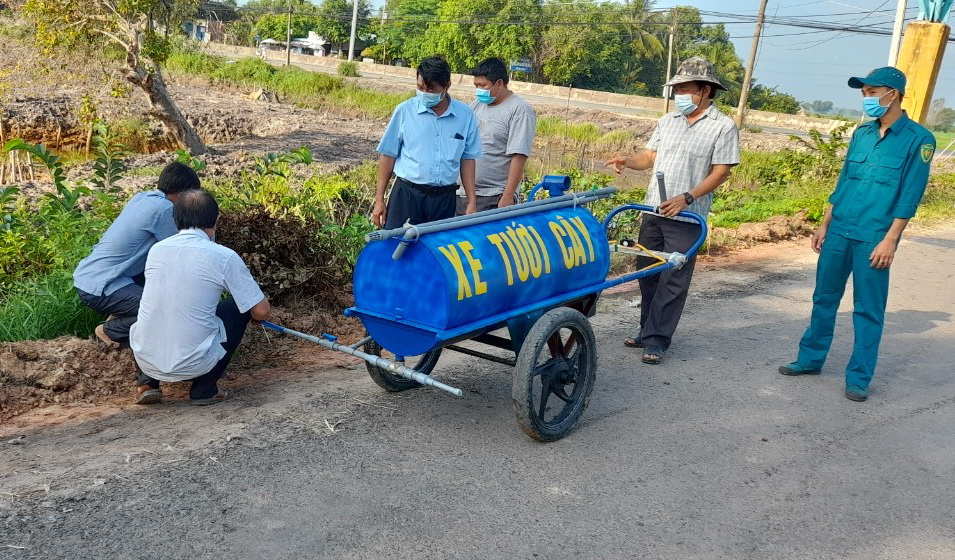 Cán bộ và nhân dân xã Hiệp Thạnh ra quân dọn vệ sinh tuyến đường ấp Chánh.