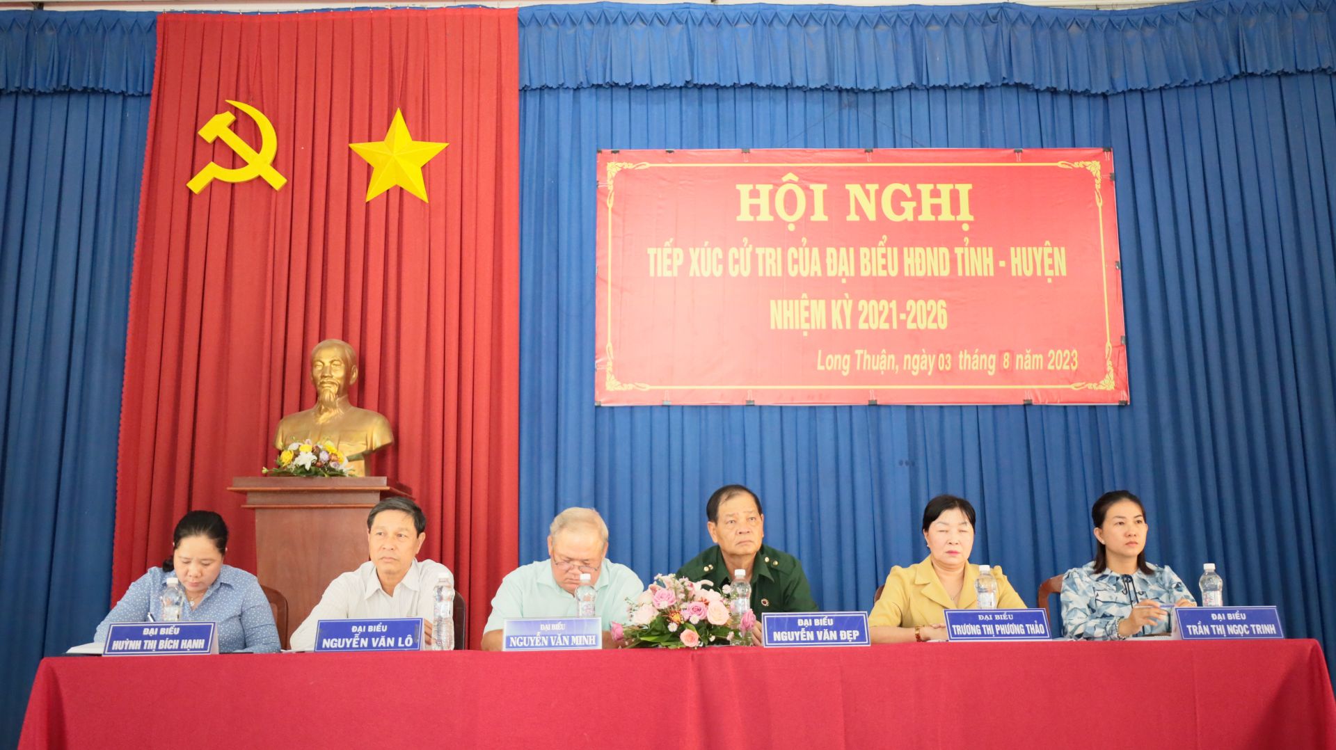 Chiều 3.8, tổ đại biểu HĐND tỉnh gồm có bà Trương Thị Phương Thảo- Giám đốc Sở Lao động - Thương binh và Xã hội; ông Nguyễn Văn Đẹp- Chủ tịch Hội Cựu chiến binh tỉnh; bà Trần Thị Ngọc Trinh- Bí thư Đảng uỷ thị trấn Bến Cầu cùng tổ đại biểu HĐND huyện Bến Cầu có buổi tiếp xúc với cử tri xã Long Thuận.